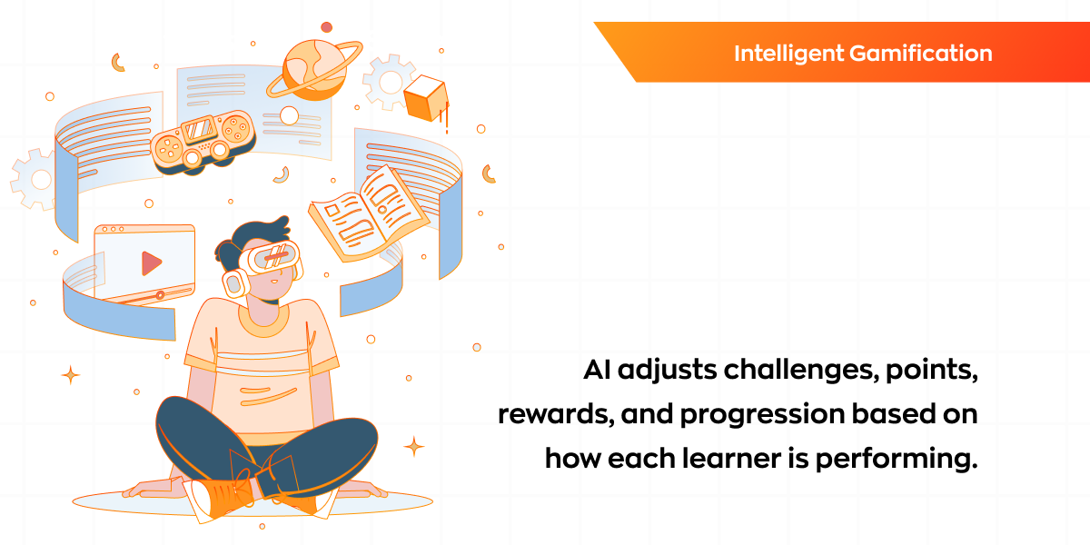 AI adjusts challenges, points, rewards, and progression based on how each learner is performing.