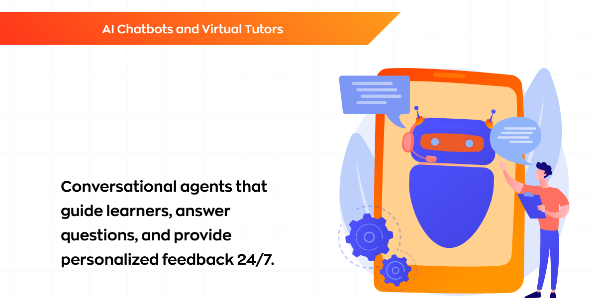 Conversational agents that guide learners, answer questions, and provide personalized feedback 24/7.