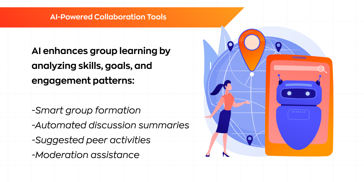 AI enhances group learning by analyzing skills, goals, and engagement patterns.